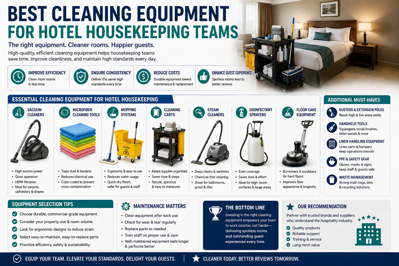 The best cleaning equipment for hotel housekeeping teams is more than just a purchase—it’s an investment in operational efficiency, hygiene, and guest satisfaction.