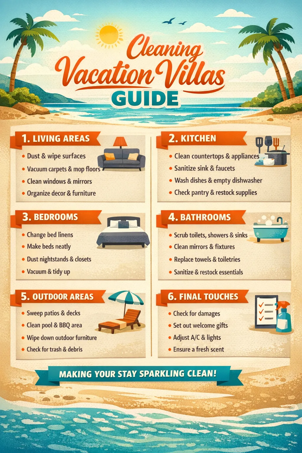 This guide explains how resort housekeeping teams can clean vacation villas efficiently while maintaining luxury-level standards.